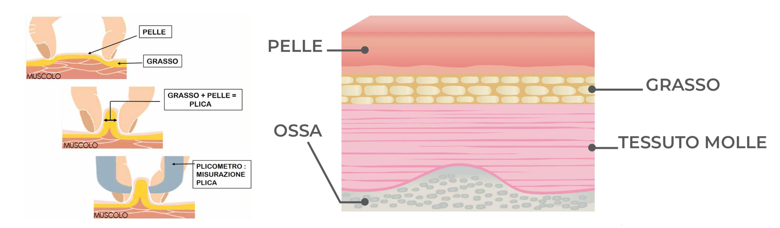 Questa metodica aiuta a determinare il valore della massa grassa utilizzando formule predittive, in cui viene inserito, tra i vari parametri antropometrici, il valore della somma delle pliche cutanee.